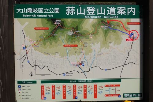 標準コースタイムは上りは1時間40分、下りは1時間20分でしたが、実際には上り1時間20分、下りは1時間あるかないかぐらい標高差600mの山行でした。紅葉は綺麗だし飽きさせない急登と絶景の尾根歩きは休憩を忘れさせる程。赤丸の下蒜山登山口に車を駐車。下、…